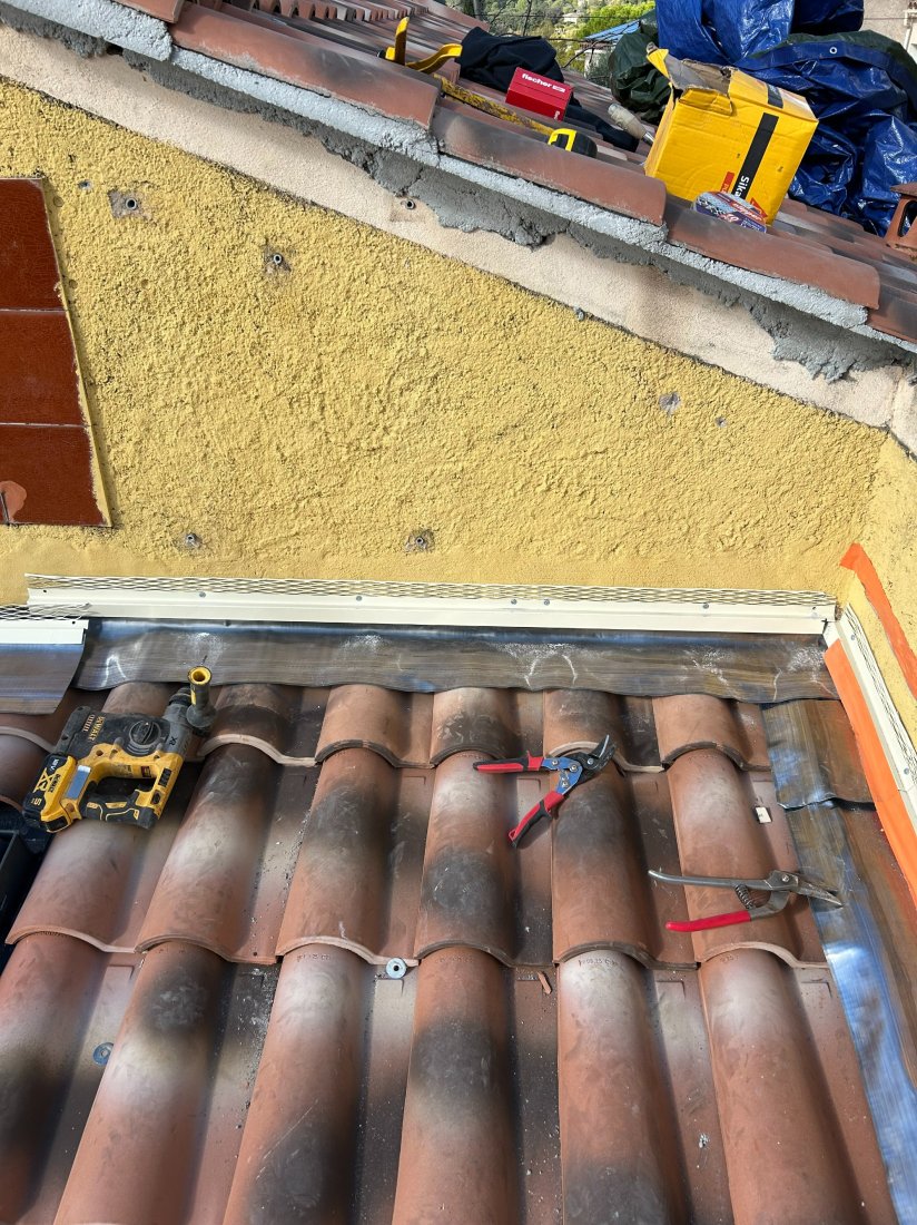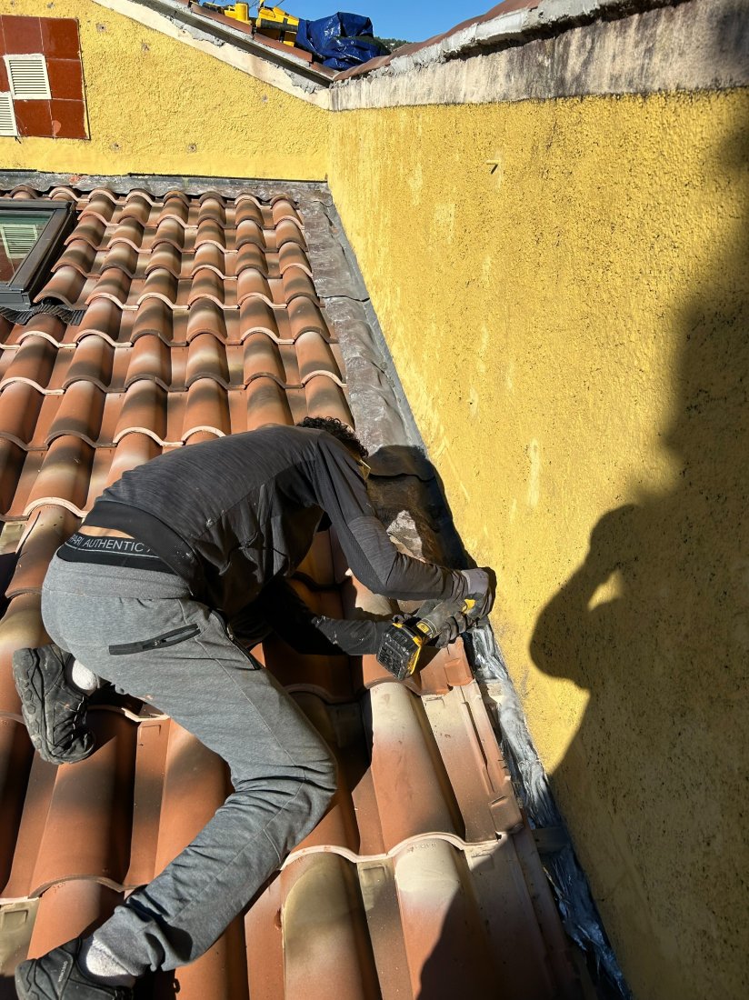 Nous avons débuté l’intervention par un diagnostic précis afin de repérer toutes les zones sensibles. Le retrait des anciens solins s’est fait avec soin pour ne pas endommager les supports. Ensuite, la pose des nouveaux solins, parfaitement ajustés, a permis d’assurer une jonction étanche entre la maçonnerie et la couverture. Enfin, la mise en place de la toiture neuve, réalisée dans les règles de l’art, assure à présent une excellente protection contre les intempéries et une belle finition à l’ensemble du bâtiment.